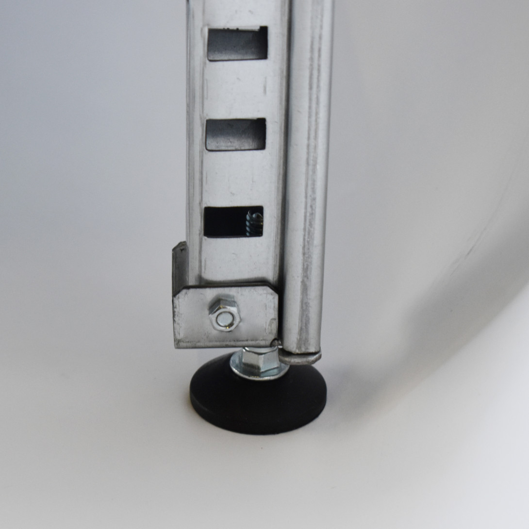 Nastavitelná patka umožňuje vyrovnání regálu na nerovném povrchu, čímž zvyšuje jeho stabilitu a bezpečnost. Zabraňuje houpání nebo naklánění regálu, což je důležité zejména ve skladech, dílnách či garážích, kde podlahy nemusí být dokonale rovné. Kromě toho pomáhá chránit podlahu před poškozením, což je výhodné zejména v kancelářích nebo domácnostech.