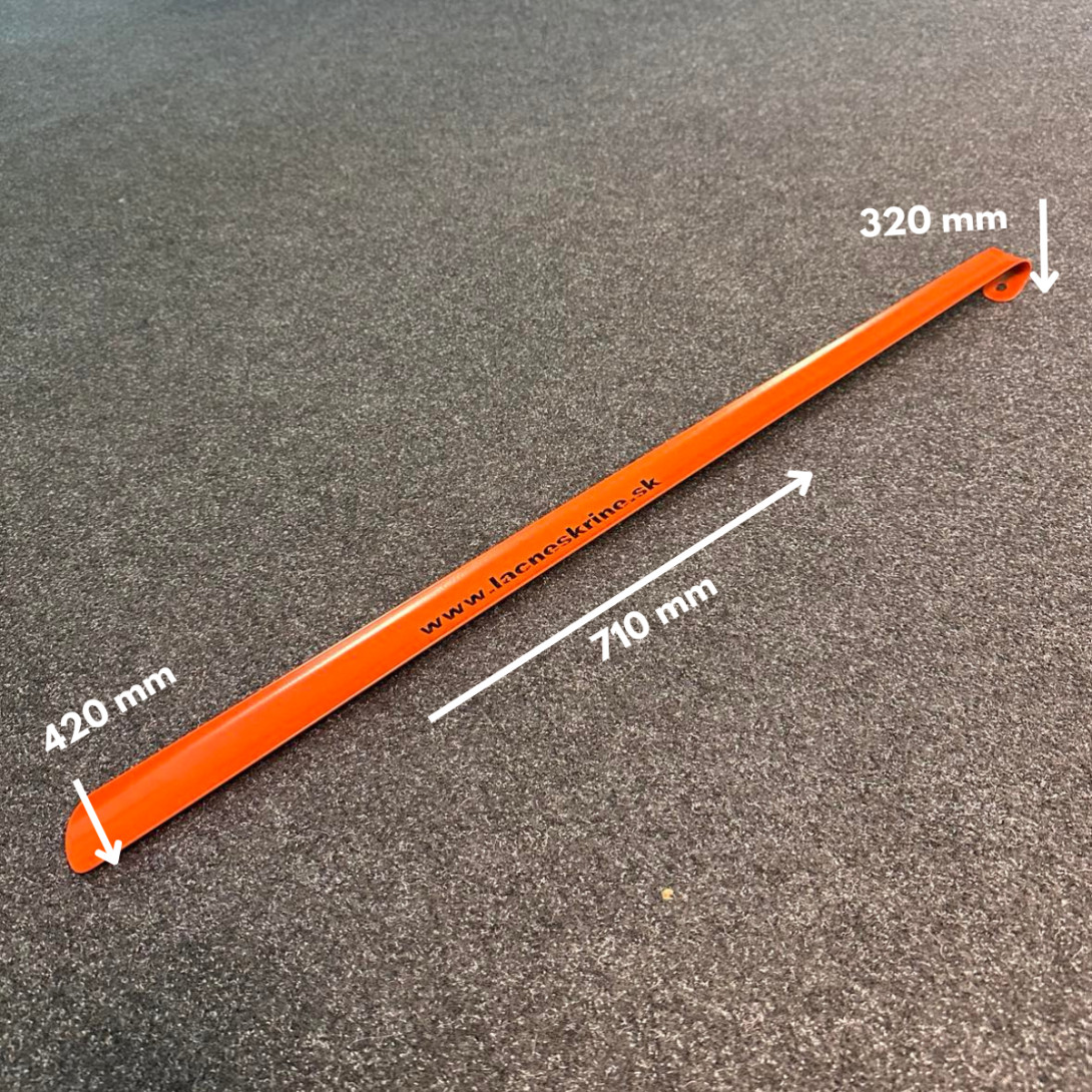 Velký masivní kovový obuvák nemůže chybět v žádné domácnosti. Obuváček je 71 cm dlouhý, 4,2 cm široký v nejširší části. Slouží k pohodlnému obouvání bez ohýbání se. Velký obuvák je ideální i pro lidi, kteří mají sníženou schopnost pohybu. Skvělá věc, která slouží pro celý život. Ideální a praktický dárek pro zaměstnance, rodiče, kamarády. Tento obuvák je dostupný v oranžové barvě - Obuváky jsou dostupné v každé barvě RAL vzorníku (min. 20 ks). V případě zájmu upřesněte prosím barvu telefonicky nebo e-mailem. Pokud zboží není skladem, doba dodání je přibližně 2 týdny.