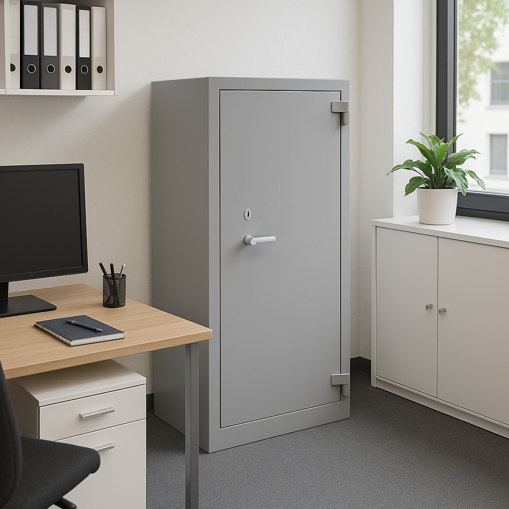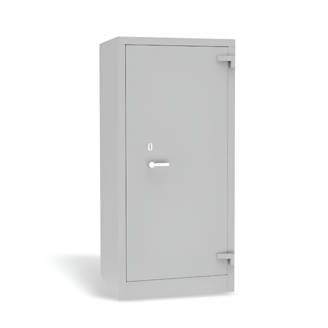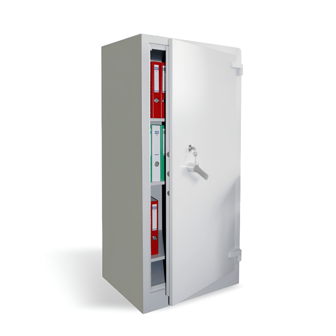 Ohnivzdornost třídy A podle DIN 4102 - na izolační desky (výplň stěn a dveří). Masivní dveře s vícebodovým uzamykáním a bezpečnostním zámkem kategorie A. Možnost ukotvení do podlahy.
