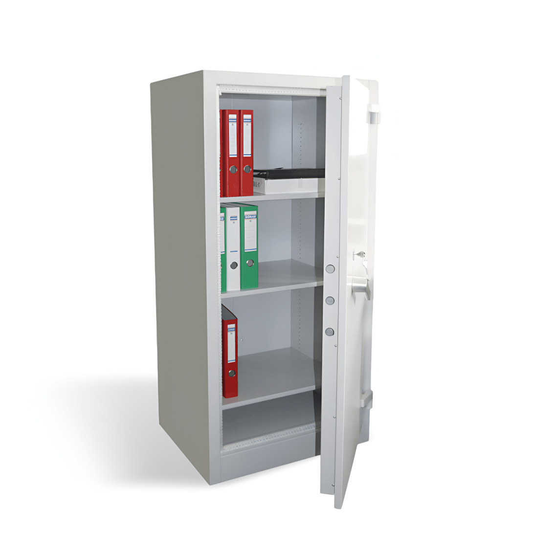 Chcete-li mít své dokumenty v bezpečí před ohněm, ale máte jich málo, tato skříň je pro Vás investičně nejlepším a nejchytřejším řešením. Díky své barvě zapadne do každé kanceláře. Protipožární skříň je ideálním řešením, když chcete mít své kartotéky, šanony, dokumenty v největším bezpečí. Skříň poskytuje účinnou ochranu proti požárům a před zloději. Má estetický vzhled, hodí se do kanceláří, archivů, ale rovněž i do dílen. Skříňka obsahuje 3 police s nosností 70 kg. Police jsou přestavitelné po 25 mm.