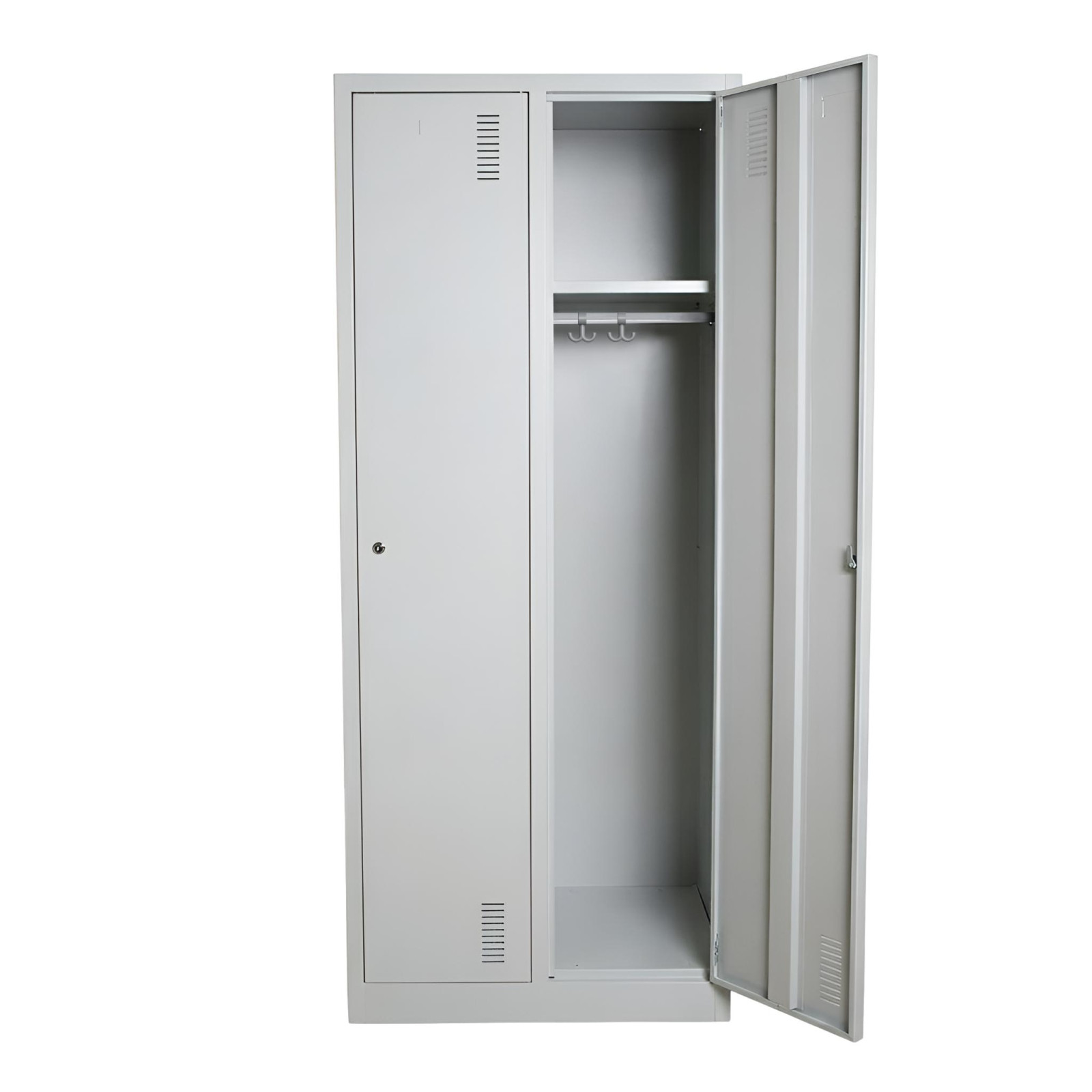 Šatní skříň s dlouhými dveřmi je praktickým řešením pro uložení pracovního nebo civilního oblečení v šatnách, dílnách, provozech, skladech či sportovních zařízeních. Díky pevné kovové konstrukci poskytuje spolehlivý úložný prostor vhodný pro každodenní používání.