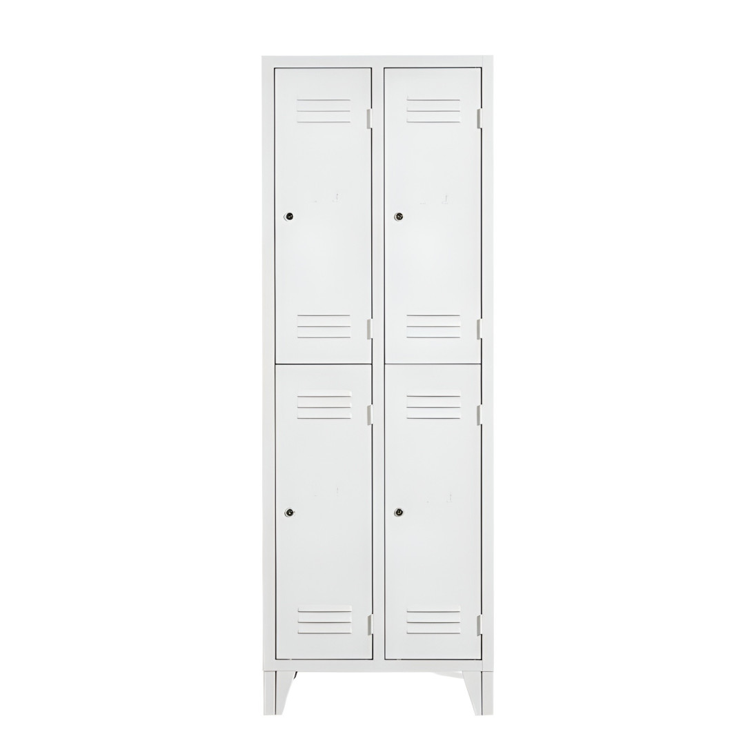 Šatní skříň #26 MINI 4 FLAT F je praktickým řešením pro uložení pracovního nebo civilního oblečení v šatnách, firmách, školách nebo sportovních zařízeních. Díky jednoduché a pevné kovové konstrukci poskytuje spolehlivý úložný prostor pro každodenní používání. Vhodná je zejména do prostředí, kde je potřeba zajistit přehledné a bezpečné uložení osobních věcí i pro větší počet lidí.