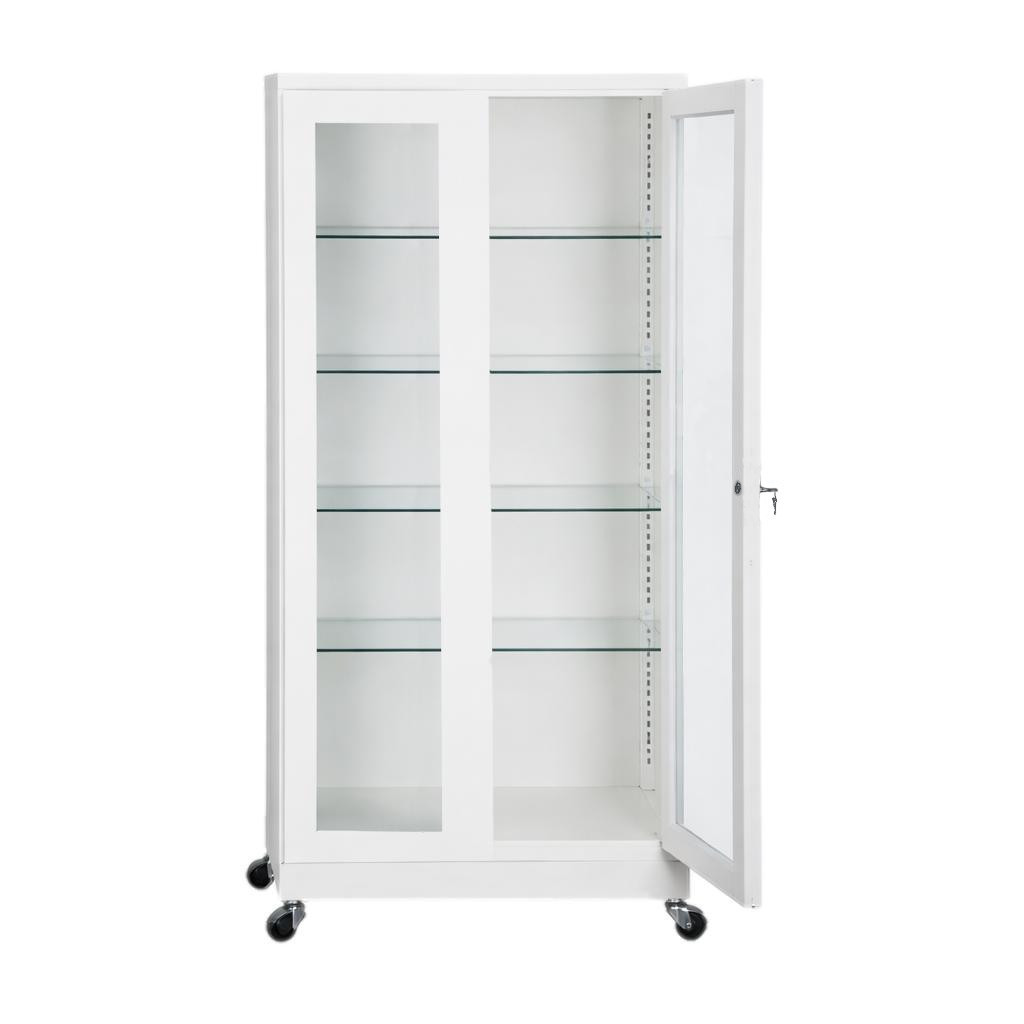 Nemocniční skříň na léky #26 MEDICINE MAXI GLASS ECONOMY FLAT je určena pro bezpečné uložení léků a zdravotnického materiálu v nemocnicích, ambulancích, ošetřovnách nebo kosmetických salonech. Díky prosklenému provedení poskytuje dobrý přehled o uložených zásobách a umožňuje rychlou kontrolu dostupnosti léků.