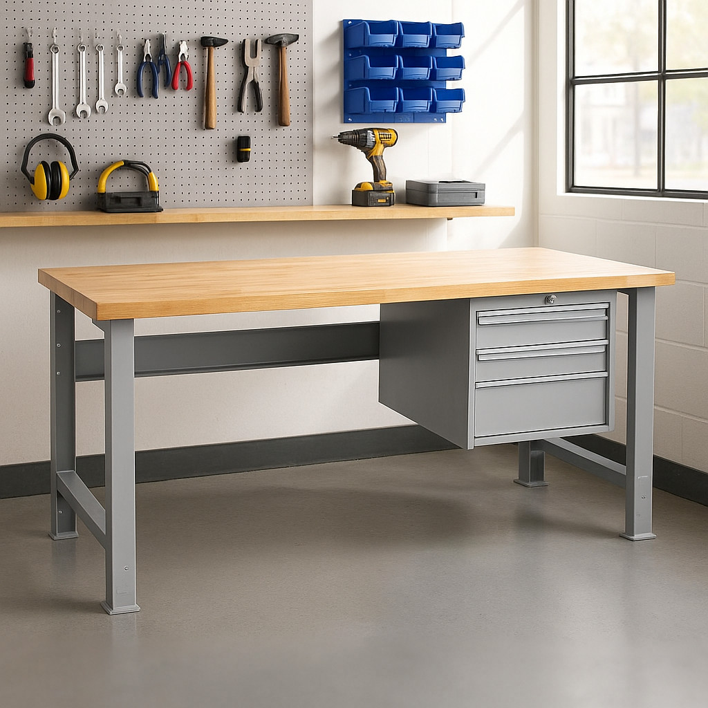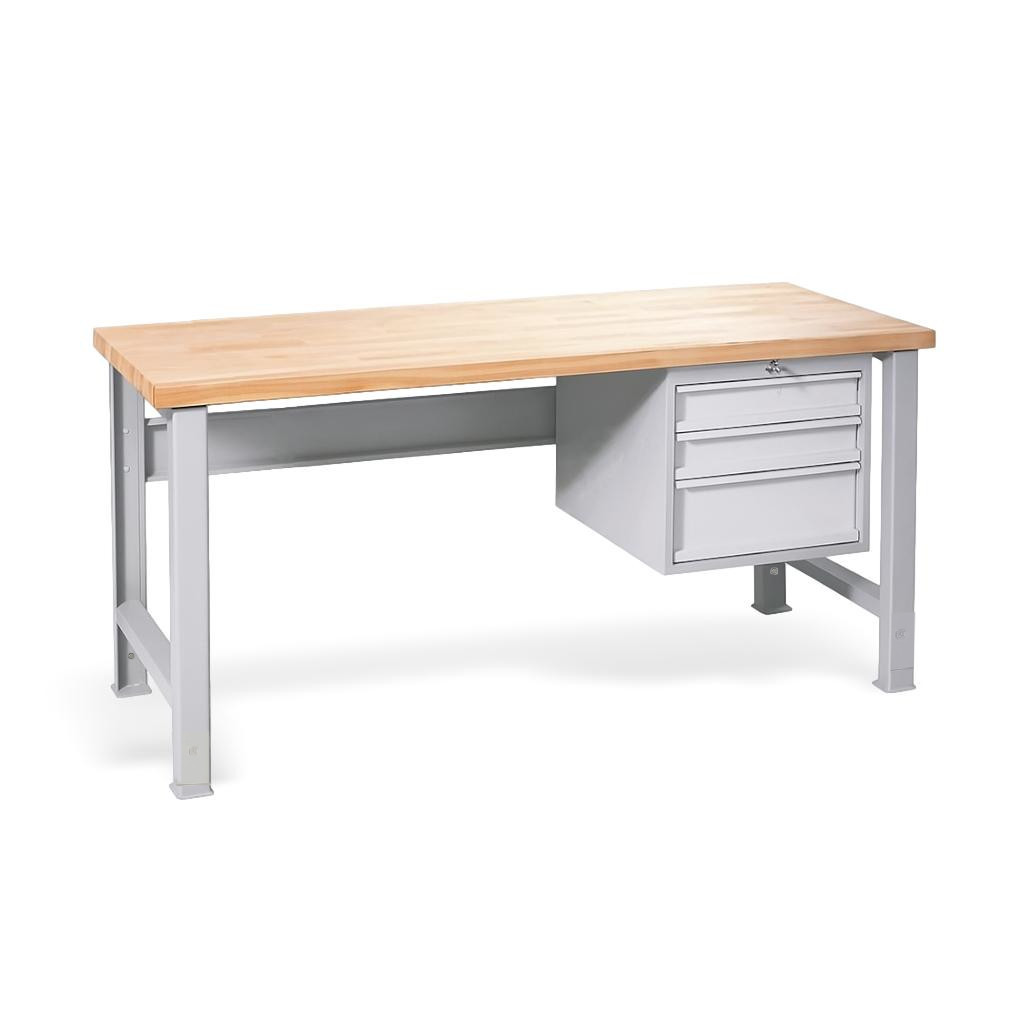 Tento odolný pracovní stůl je ideálním řešením pro dílny, výrobu i servisní prostory, kde je zapotřebí pevnost, flexibilita a bezpečné ukládání nářadí. Buková pracovní deska o tloušťce 40 mm a délce 1700 mm poskytuje stabilní a odolný povrch i při náročných úkolech.