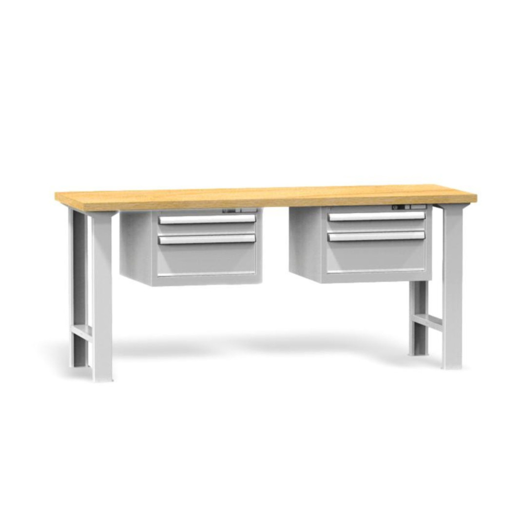 Pracovní stůl se dvěma zásuvkami na obou stranách a výškově nastavitelnými nohami, 2000 mm
