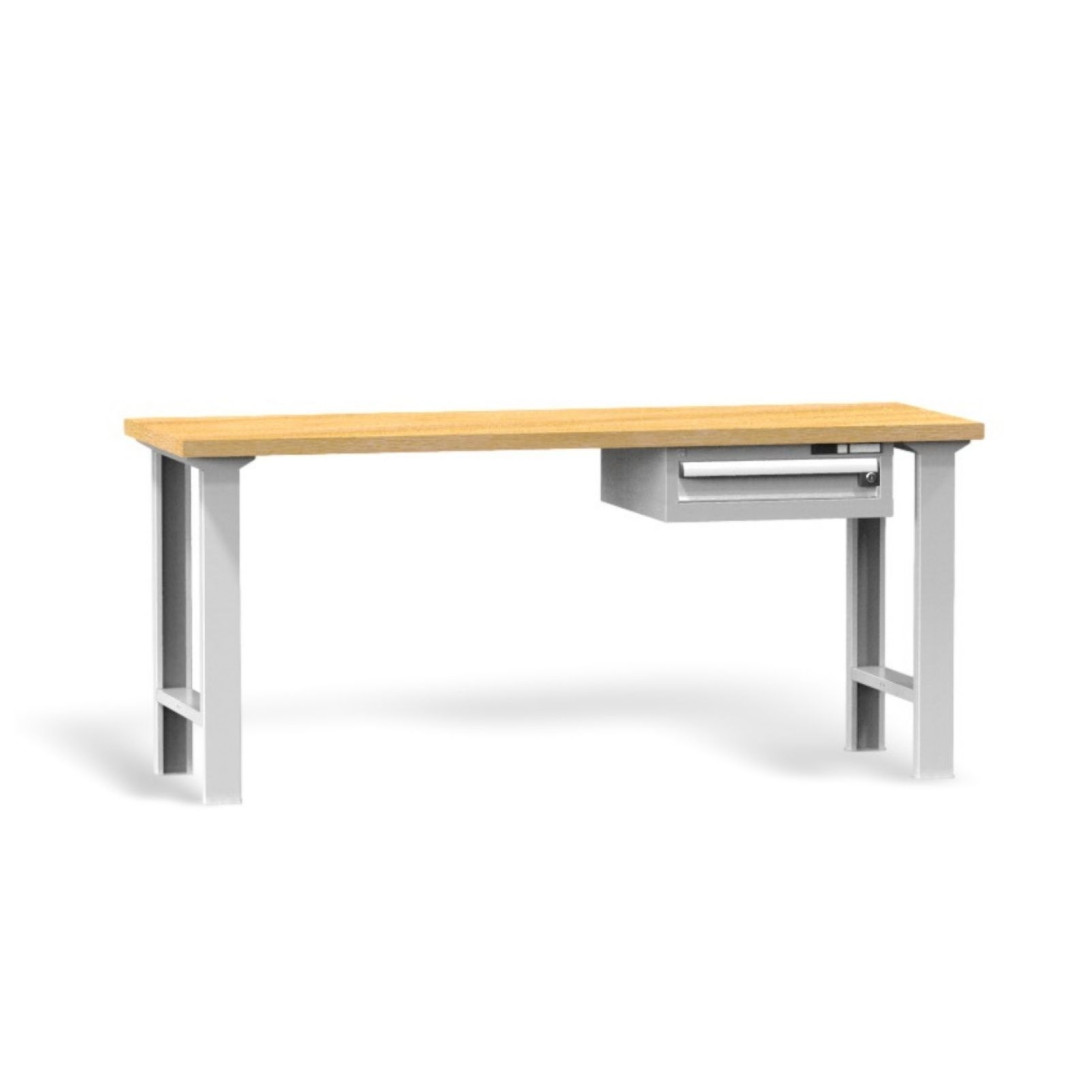 Díky výškově nastavitelným nohám si stůl snadno přizpůsobíte své postavě i nerovnému povrchu, což zaručí pohodlnou a ergonomickou práci po celý den. Pod pracovní deskou se nachází jedna praktická zásuvka, ideální pro uložení nejpoužívanějšího nářadí, abyste ho měli vždy po ruce a pracovní plochu přehledně uspořádanou. Velkorysá délka 2000 mm nabízí dostatek prostoru i pro větší projekty, přičemž design zůstává jednoduchý, čistý a nadčasový.