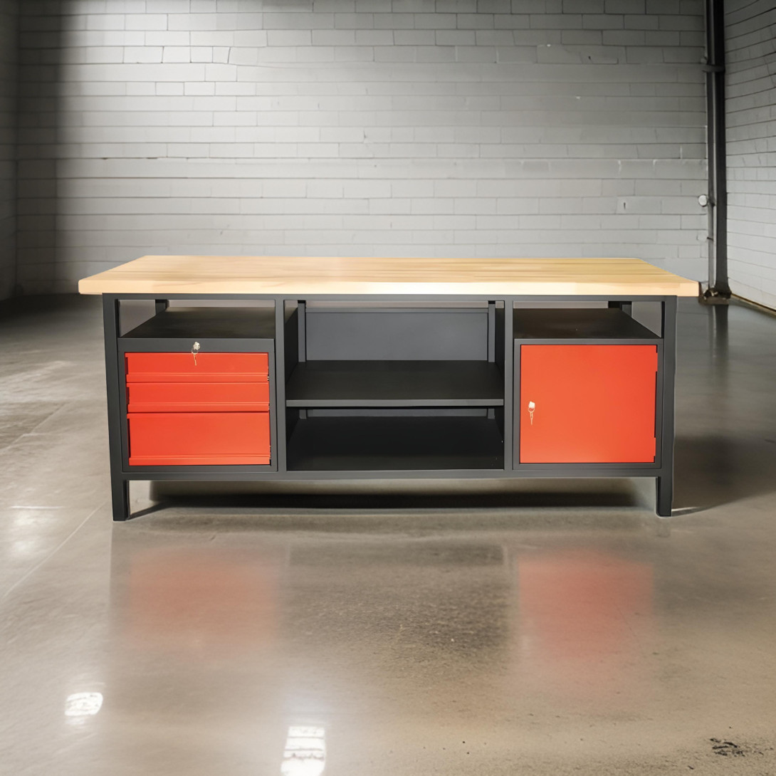 Tento pracovní stůl je vhodný pro různá pracovní prostředí, jako jsou dílny nebo domácí pracovní místnosti, kde potřebujete spolehlivý a dobře organizovaný pracovní prostor.